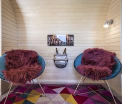 Ihr schlichter, moderner Stil fügt sich perfekt in die rustikale Umgebung und die umliegende Natur ein.
