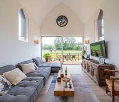 Die Renovierung dieser Kapelle begann 2018 und wurde 2024 abgeschlossen. Einge der ursprünglichen Merkmale, wie die wunderschönen Bleiglasfenster und hohen Decken sind erhalten geblieben. Das Innere ist besonders hell und geräumig dank der großen Fenster und der beeindruckenden Höhe. Die Wendeltreppe strukturiert den Wohnbereich und führt in das Obergeschoss, wo sich 3 Schlafzimmer und 2 Badezimmer befinden.
