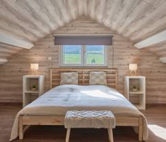 Das Chalet verfügt über 2 Schlafzimmer: eines mit einem Doppelbett im Erdgeschoss und ein zweites Schlafzimmer unter dem Dach mit einem Doppelbett und 2 Einzelbetten. Für die Kleinen gibt es eine spezielle Ecke mit Kinderspielen, Büchern und Gesellschaftsspielen. Draußen können sie sich mit einem Sandkasten und einem Bouleplatz vergnügen. Der Spielraum innen bietet noch mehr Möglichkeiten für Spaß, dank unter anderem einer Dartscheibe.