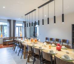 Geselliges Beisammensein in behaglicher Atmosphäre: So lautet das Motto für Ihren Aufenthalt in diesem Ferienhaus aus Ardenner Naturstein! Ein besonderes Highlight ist der große Kamin im Wohnzimmer. Machen Sie es sich mit einem guten Buch und einem Glas Wein beim wärmenden Feuer gemütlich – was könnte schöner sein? In diesem ausgesprochen geräumigen und komfortablen Ferienhaus hat jeder genügend Raum für sich und genießt die nötige Privatsphäre. Jedes Schlafzimmer (eines davon speziell für Kinder und Jugendliche) hat ein eigenes Badezimmer – ideale Voraussetzungen für einen Gruppenaufenthalt. Im Sommer können Sie einen schönen Aperitif auf der Terrasse trinken, während sich die Kinder im Spielzimmer oder im gemeinschaftlich genutzten Garten vergnügen, den Sie sich mit den Gästen der angrenzenden Unterkunft teilen.
