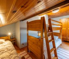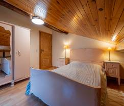 Die Holzbalken verleihen dem Ferienhaus einen außergewöhnlichen Charakter. Das Objekt ist zweigeschossig aufgebaut. Die Schlafzimmer befinden sich im ersten Stock, während das Wohnzimmer im Erdgeschoss zu finden ist. Nach einem aktiven Tag mit Wanderungen und Besichtigungen können Sie abends das gemütliche Kaminfeuer im Wohnzimmer genießen.