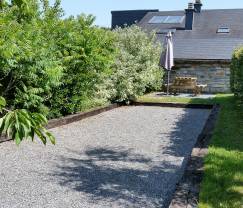 Im Außenbereich wurde von den Eigentümern im teilweise mit Gitterzäunen eingefassten privaten Garten eine Petanquebahn angelegt. Hier können Sie entspannte Momente erleben, während Sie das Holzfeuer des Grills entzünden.