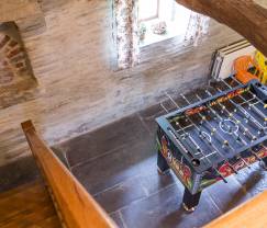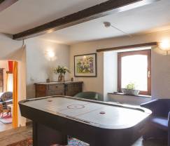 Große Innenräume, eine raffinierte Dekoration und erstklassiger Komfort stehen auf dem Programm dieses Ferienhauses mit Platz für 27 Personen. Der rustikale Stil passt sehr gut zur unaufdringlichen Eleganz der Einrichtung. In dem geräumigen Wohnzimmer können Sie es sich auf einem der vielen Sofas gemütlich machen oder auf der sonnenverwöhnten Veranda mit bequemen Rattanmöbeln und großem Fenster den Blick auf den Garten genießen. Wenn Sie gerne Air Hockey spielen, können Sie sich im zweiten Wohnzimmer am Kamin eine Partie nach allen Regeln der Kunst liefern, während sich die Kinder im Spielzimmer mit einer großen Vielfalt an Gesellschaftsspielen und einem Tischkicker vergnügen. Die geräumige Küche – ausgestattet mit 2 Kühlschränken – ist ideal für die Zubereitung Ihrer Mahlzeiten, und die Waschküche ist sehr praktisch für Gruppenaufenthalte. Sie verfügen über 9 Schlafzimmer (davon 2 mit privatem Badezimmer) und 2 zusätzliche Badezimmer. Mit einer Fläche von 1200 m², einer Rutsche, einer Schaukel, einem Trampolin und einer Spielbude für Kinder verspricht der private Garten schöne und unterhaltsame Stunden an der frischen Luft.