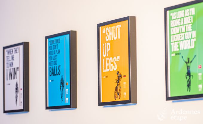 Der Besitzer dieses Ferienhauses aus Ardenner Naturstein ist begeisterter Radfahrer. Und das sieht man auch gleich beim Betreten des Wohnbereichs, wo an der Wand ein Rennrad hängt. Dementsprechend hat Ihr Vermieter für Sie einen geräumigen und abschließbaren Fahrradraum eingerichtet, in dem jede Menge Fahrräder Platz finden. Es gibt 4 hübsche Schlafzimmer, in denen Sie nach Ihren Radtouren eine wunderbare Nachtruhe genießen werden, sowie 2 Badezimmer. Den Kindern wird das Mezzanin in ihrem Zimmer besonders gut gefallen! Im komfortablen Wohnzimmer können Sie beim Pelletofen entspannen und der Hobbybereich lädt zu spannenden Billard-Partien ein. Die Küche ist komplett ausgestattet, sodass Sie sich dort nach Ihrem Fahrradausflug eine stärkende Mahlzeit zubereiten können. Im Garten gibt es einige Spielgeräte, von denen die Kinder begeistert sein werden, und auch wenn der Wettergott einmal schlecht gelaunt ist, können Sie auf der überdachten Terrasse die frische Luft genießen. Der private Parkplatz bietet Platz für 4 Autos.