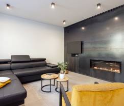 Im gemütlichen Wohnzimmer können Sie sich am Kamin entspannen. Darüber hinaus gibt es einen Spielraum mit Darts und Tischfußball, ideal für ein wenig geselliger Wettbewerb mit Ihren Freunden oder der Familie. Die Küche ist voll ausgestattet, so dass Sie ganz einfach Ihre Lieblingsgerichte zubereiten können.