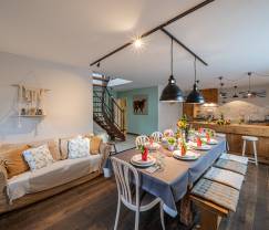 Das Haus verfügt über zwei Wohnbereiche, ideal, wenn Sie etwas Zeit für sich alleine verbringen möchten. Vielleicht möchten einige in aller Ruhe ein Buch lesen, während andere mit den Kindern ein Spiel spielen? Kein Problem, es gibt genug Platz. Und vergessen wir nicht den großen privaten Garten, in dem Sie die ruhige Umgebung genießen können.