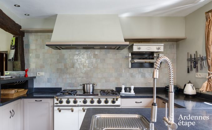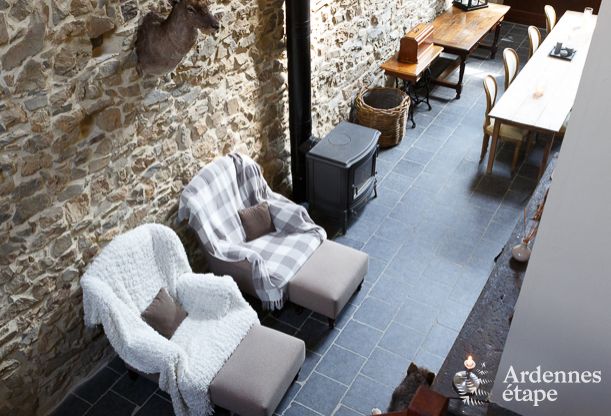 Dieses 3-Sterne-Ferienhaus für 7 Personen zur Vermietung in der Nähe von Vielsalm in der Provinz Luxemburg besticht mit einer gepflegten Inneneinrichtung, welche den unverfälschten Charakter des Gebäudes gut zur Geltung bringt. Warme Farben und der für die Region typische Bruchstein verleihen diesem behaglichen Nest inmitten der belgischen Ardennen einen unverwechselbaren Charme, weit weg vom Alltagsstress. Der Hauptwohnbereich besteht aus einem gemütlichen Wohnzimmer mit Einbaukamin und einer voll ausgestatteten Küche. Der ideale Ort für ein geselliges Beisammensein mit Familie oder Freunden. Auch das wunderschöne und zur Geselligkeit einladende Esszimmer mit seinem Holzofen trägt zum Wohlfühlfaktor bei, der in diesem Ferienhaus seine ganze Wirkung entfaltet. Im Obergeschoss befinden sich 4 behagliche Zimmer und 2 moderne und praktische Badezimmer. Eines der beiden Badezimmer ist der privaten Nutzung vorbehalten, das gemeinsame Badezimmer Ihrer Gruppe verfügt hingegen über eine Sauna. Außerdem gibt es eine wunderschöne Sitzecke im Mezzanin, die einfach dazu einlädt, sich in ein gutes Buch zu vertiefen. Ihr renoviertes Bauernhaus verfügt ferner über eine Waschküche mit Waschmaschine und ist auch für Babys ausgerüstet. Nichts fehlt für einen stressfreien Urlaub.