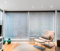 Über die Treppe gelangen Sie hinauf in den Wohnbereich, der zu den Highlights dieses Ferienhauses gehört, denn er ist geräumig, lässt viel Tageslicht hinein, ist gut ausgestattet, und der Blick auf die Terrasse vermittelt ein angenehmes Wohlbefinden. Das Sofa lässt sich zu einer Schlafcouch ausklappen, und – keine Sorge – die Fenster lassen sich mit elektrischen Jalousien lichtgeschützt verschließen.