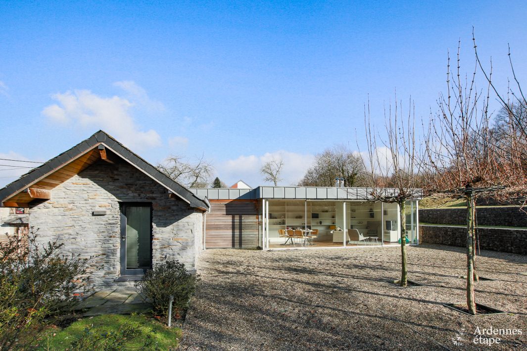 Ferienhaus mit 2 Schlafzimmern, Terrasse und Garten in der Nähe von Vielsalm. Zwei Hunde sind willkommen. Als Bonus verfügen Sie über einen privaten Wellnessbereich mit Sauna. Dieses Ferienhaus im Zentrum eines ruhigen Dorfes in der Provinz Luxemburg ist in seiner Art einzigartig. Hinter der Fassade aus regionalem Naturstein verbirgt dieses kleine Haus einen reizvollen Wohnbereich mit...