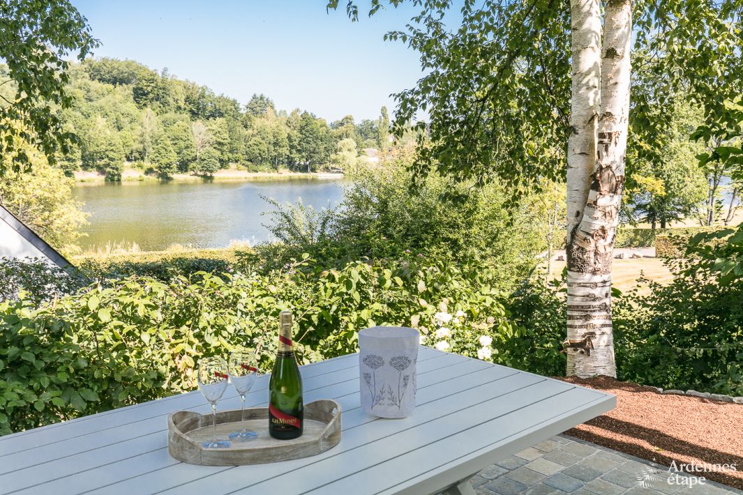 Wunderschönes Ferienhaus am Wasser für vier bis sechs Personen, mit drei Zimmern, einem Badezimmer und einer Sauna, gelegen in einem Feriendorf. Modern, warm, geschmackvoll eingerichtet, Designausstrahlung ... Dieses Haus hat alle Vorteile für einen erfolgreichen Urlaub. Dank der großen Schiebetür ist das Wohnzimmer lichtdurchflutet und Sie genießen eine beruhigende Aussicht. Sie werden sich hier sofort entspannen, besonders wenn Sie auch die Infrarotsauna nutzen. Auf der Terrasse mit Blick auf den See können Sie das Leben in vollen Zügen genießen. Dieses Ferienhaus befindet sich in der Provinz Luxemburg, in einem Feriendorf am Vielsalm See. In den Gemeinschaftsbereichen können Ihre Kinder nach Herzenslust spielen und Spaß haben. Die Lage ist auch ideal, genau in der Mitte zwischen Wald, Stadt und Fluss. Alles ist in der Nähe, und doch sind Sie mitten in der Natur. Lust auf Croissants zum Frühstück? Die Bäckerei ist zu Fuß erreichbar! Möchten Sie mit den Kleinsten spazieren gehen? Kein Problem, denn die RAVeL-Route ist nur einen Steinwurf entfernt! Möchten Sie lieber eine längere Wanderung machen? Auch dann haben Sie viele Möglichkeiten. Sie sehen: Hier können Sie einfach tun, was Sie wollen. In diesem Ferienhaus finden Sie alles, was Sie für einen erfolgreichen Urlaub mit der ganzen Familie brauchen!
