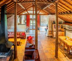 Für gemütliche Momente drinnen gibt es einen Kamin, der für eine warme und stimmungsvolle Atmosphäre sorgt. Sie können sich im geräumigen Loungebereich oder an der Bar versammeln, wo Sie ein Getränk zubereiten und die Gesellschaft genießen können. Für Spielbegeisterte stehen ein Tischfußballspiel und verschiedene Gesellschaftsspiele zur Verfügung, sodass immer etwas los ist.