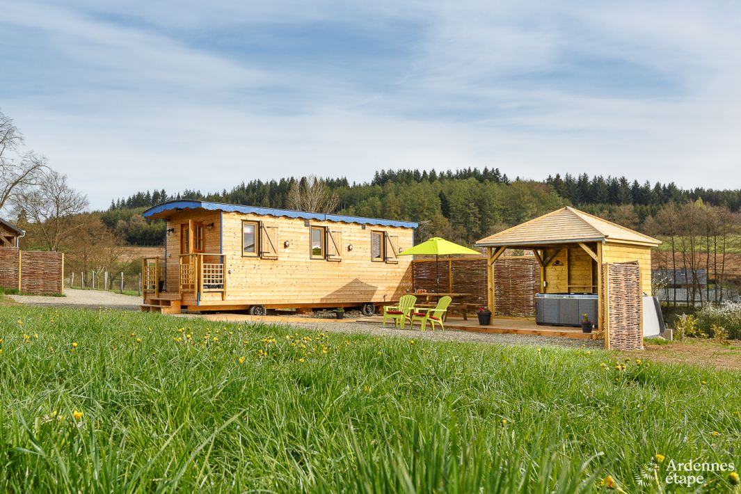 Möchten Sie zu zweit den Charme der Ardennen genießen und zugleich Ihren Urlaub zu einer außergewöhnlichen Erfahrung machen? Dann öffnen Sie die Tür dieses Wohnwagens und Sie werden überzeugt sein! Die Einrichtung dieser außergewöhnlichen Unterkunft in Vielsalm in der Provinz Luxemburg besteht aus Holz und zeichnet sich durch lebendige und...