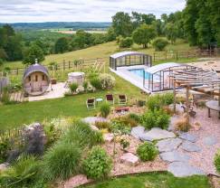 Klein huisje, met zeer mooi uitzicht op het landschap en gelegen in een prachtige tuin. Uitstekende welnessfaciliteiten (jacuzzi, zwembad, sauna) Zeer goede ligging