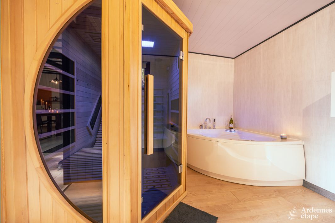 Gönnen Sie sich einen romantischen Urlaub zu zweit im Wald ! Dieses Ferienhaus bietet Ihnen ein Schlafzimmer, einen privaten Wellness-Bereich mit Sauna und Whirlpool, eine Terrasse und Platz für 2 Hunde. Ein Chalet mitten im Wald – das allein ist schon romantisch! Darüber hinaus können Sie sich in Ihrem Schlafzimmer im Whirlpool entspannen , bevor Sie...