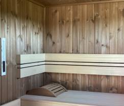 Im Inneren findet man einen stimmungsvollen Kaminofen, der für eine warme und gemütliche Atmosphäre sorgt, besonders an kühleren Abenden. Nach einem Tag voller Aktivitäten kann man sich in der Sauna vollkommen entspannen, ein Luxus, der dem Aufenthalt das gewisse Extra verleiht. Für die Kinder (und auch Erwachsene, die jung im Geist sind) gibt es einen Kicker, perfekt für eine lustige und aktive gemeinsame Zeit.