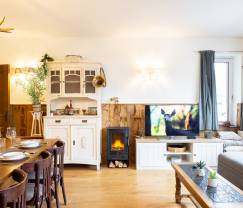 Das Wohnzimmer ist ein gemütlicher Ort zum Zusammensein, mit einer komfortablen Sitzecke. Die Küche ist voll ausgestattet, so dass Sie ganz einfach Ihre Lieblingsgerichte zubereiten können.