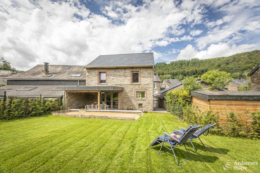 Ruime woning in het centrum van Alle-sur-Semois, vlak bij winkels en wandelroutes. Parkeerplaats voor 3 wagens. Binnenkom zonder hal maakt de living snel vuil. Living en houtkachel (vuil bij aankomst) zijn wat beperkt en de verwarming warmt traag op zelfs met kachel. Keuken is volledig maar onhandig ingericht met te lage kasten. Boven zijn praktische kamers, maar het felle automatische licht stoort ’s nachts. Grote tuin zonder uitzicht en een terras zonder namiddagzon. 2 WC's zijn wel praktisch.