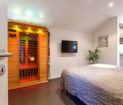 Sie suchen nach einer Ferienwohnung in bewaldeter Umgebung? Sie wollen sehr hohen Komfort und einen Wellnessbereich?