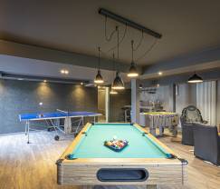 Haben Sie Lust auf einen Traumurlaub mit Ihren Liebsten? Dieses hübsche, bestens ausgestattete Ferienhaus ist der ideale Ort, um neue Energie zu tanken. Nehmen Sie sich Zeit für sich selbst und entspannen Sie im Außenwhirlpool und in der Innensauna : Hier werden Sie garantiert abschalten! Finden Sie sich an Winterabenden im Spielzimmer zusammen, um an der Bar bei einem Drink zu plaudern oder eine Partie Billard zu spielen. Im Sommer werden sicher gerne im Garten in der Sonne entspannen und anschließend ein leckeres Barbecue zubereiten. Die geräumige Terrasse ist der ideale Ort, um gemeinsam zu essen und den Tag gemütlich ausklingen zu lassen...
