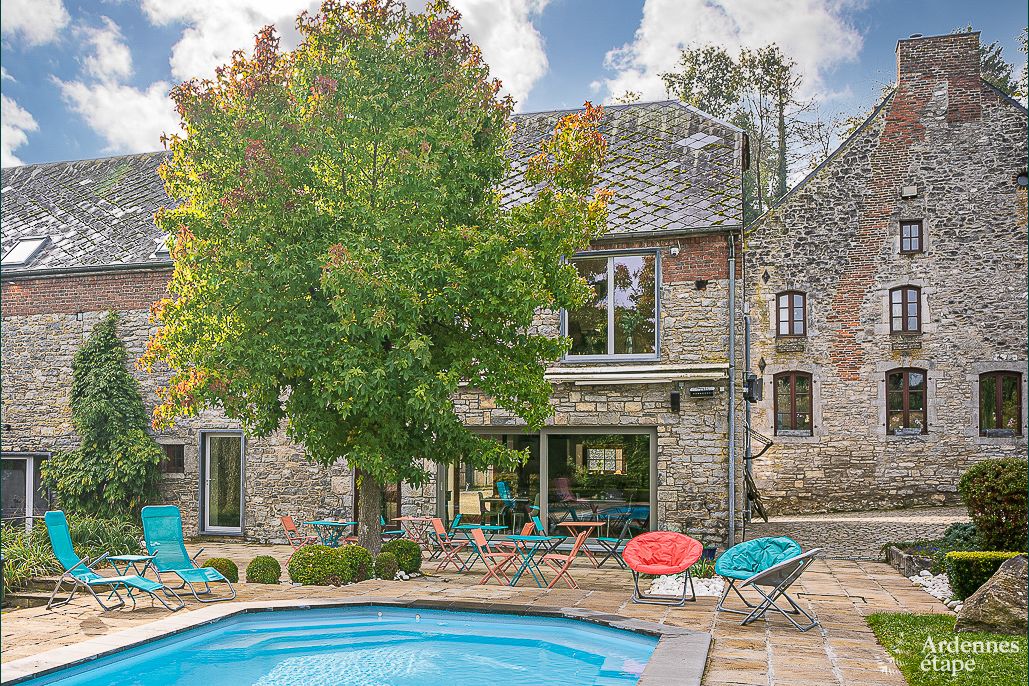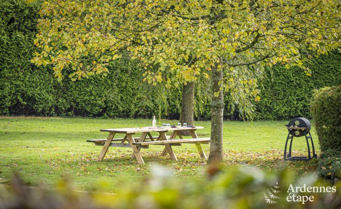 Draußen öffnet sich das Haus zu einem gemeinsamen Garten und einer geteilten Terrasse, wo man sich wunderbar entspannen kann. Die Gartenmöbel laden dazu ein, die schönen Tage voll auszukosten, während der Grill gesellige Mahlzeiten unter dem Ardennenhimmel verspricht. Für Schwimmbegeisterte steht ein Außenpool zur Verfügung, der nach einem aktiven Tag eine willkommene Erfrischung bietet.