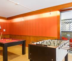 Direkt daneben befindet sich ein einladendes Spielzimmer mit Billardtisch und Kickertisch. Die Barecke mit Barhockern und einigen Tischen verstärkt noch die gesellige Note dieses Hauses.