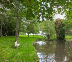 Das große bewaldete Anwesen wartet mit hübschen Grünflächen und (nicht abgesicherten) Teichen auf, die durch einen Bachlauf miteinander verbunden sind.
