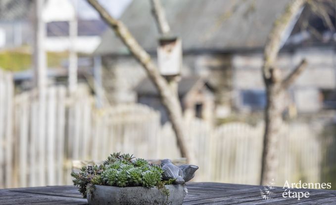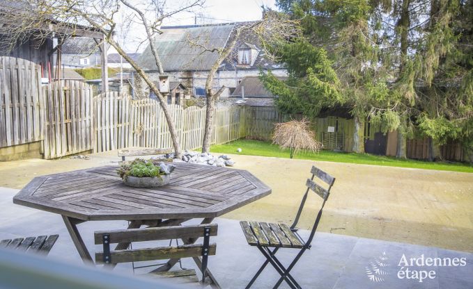 Malgré un temps mitigé la première semaine , le soleil a fait son apparition pour la deuxième. la terrasse est spacieuse et le jardin agréable. Les balades le long de la Lesse sont plein de charme. Nous avons fait quelques barbecue( très bon matériel).Je recommande cette maison spacieuse .