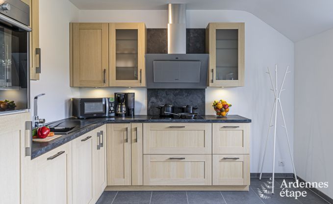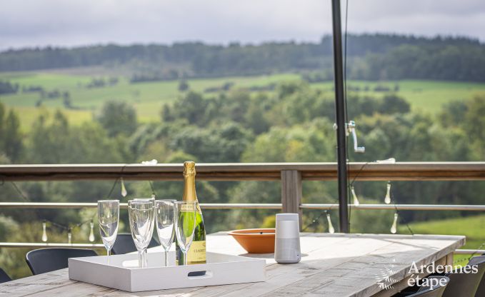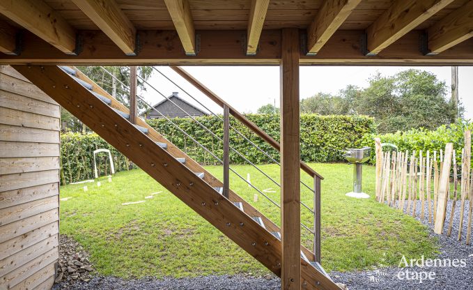 Haben Sie Lust, allem zu entfliehen, die Ruhe und die Natur im Herzen der Ardennen zu genießen? Dann liegen Sie hiermit genau richtig! Die Region hält eine Menge Überraschungen für Sie bereit: Stürzen Sie sich ins Abenteuer oder machen Sie eine Tour auf der Lesse. Es sei denn, Sie möchten lieber einen originellen Ausflug mit einer Vespa machen! Krönen Sie Ihren Urlaub in den Ardennen mit einem leckeren Barbecue oder einem erfrischenden regionalen Bier auf der großen Sonnenterrasse, die einen atemberaubenden Ausblick bietet … Und die Kinder? Sie werden sich mit dem Kubb-Spiel im Garten vergnügen. Am Abend können Sie den Sternenhimmel bewundern und diesen Moment der Entspannung auf der Terrasse mit stimmungsvoller Beleuchtung verlängern. Kleines Extra: Mit dem mobilen Bose-Soundsystem können Sie Ihre Lieblingsmusik drinnen und draußen genießen!