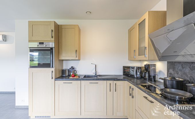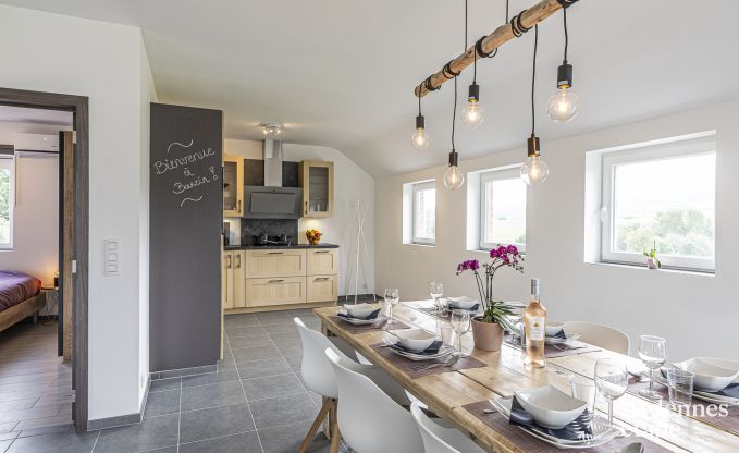 Brandneue und komplett ausgestattete Ferienwohnung mit 2 Schlafzimmern und 1 Badezimmer im Dorf Barzin. Ruhe, Panoramablick auf das Tal! Haben Sie Lust, allem zu entfliehen, die Ruhe und die Natur im Herzen der Ardennen zu genießen ? Dann liegen Sie hiermit genau richtig! Die Region hält eine Menge Überraschungen für Sie bereit: Stürzen Sie sich ins Abenteuer oder machen Sie eine Tour auf...