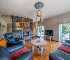 Das Haus verfügt über einen gemütlichen Holzofen, in dem Sie sich nach einem Tag voller Abenteuer entspannen können. Für diejenigen, die gerne Spiele spielen, stehen verschiedene Gesellschaftsspiele zur Verfügung. Und wenn Sie Lust auf einen Drink haben, gibt es eine Bar, in der Sie Ihre eigenen Cocktails mixen können.