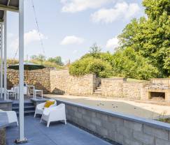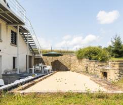 Der Privatgarten und die Privatterrasse sind perfekt, um die frische Luft und die Ruhe der Natur zu genießen. Für Liebhaber von Outdoor-Aktivitäten gibt es ein Boulefeld und Außenspielgeräte. Der Garten ist mit komfortablen Gartenmöbeln und einem Holzgrill ausgestattet, ideal für gesellige Abende mit Freunden oder Familie. Der Kassettenkamin im Inneren sorgt für eine warme und gemütliche Atmosphäre an kühleren Abenden.
