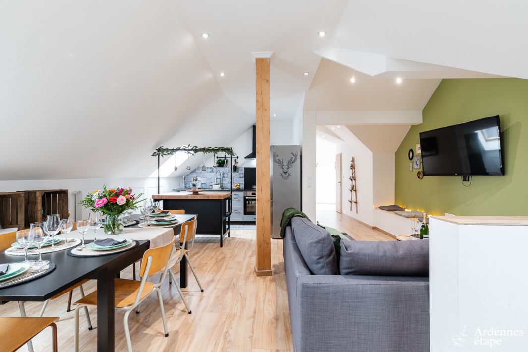 In diesem Ferienhaus für 4 Personen lernen Sie die Ardennen in der Region des Großherzogtums kennen. Mit zwei Schlafzimmern, einem farbenfrohen Wohnbereich und einem kleinen Garten ist es zu jeder Jahreszeit umwerfend. Diese Ferienwohnung unter dem Dach hat eine peppigen, modernen und farbenfrohen Look . Die Unterkunft strahlt unglaublich viel Energie aus. Der offene Wohnbereich ist...