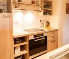 Die Holzterrasse und der Garten stehen Ihnen zur privaten Nutzung zur Verfügung, damit Sie sich bei schönem Wetter an der frischen Luft erholen können. Die Gartenmöbel aus Holz, der Sonnenschirm und der Grill laden Sie ein zu grenzenloser Erholung.