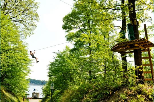 Eröffnet im Jahre 2012, ist der Natura Parc der Seen von "l'Eau d'Heure" ein Hochseil- und Seilrutschpark, von denen eine ziemlich einzigartig ist, da sie über den See führt. Ein toller Ausflug für Alle, denn der "Pitchouns"-Parcours ist Kindern zugänglich sobald sie mit nach oben gestreckten Armen 1m10 groß sind.