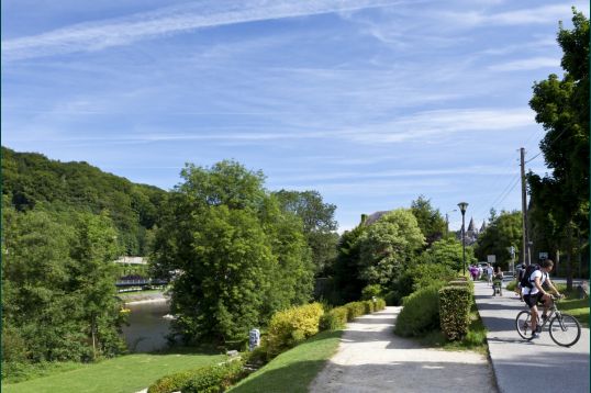 Begeben Sie sich auf Entdeckungsreise des Ourthe-Tales, geschützte Schönheit der Natur... Der RAVeL 5 nimmt Sie mit zu einem Ausflug zwischen Felsmassive und Touristenstädte. "Que du bonheur"!